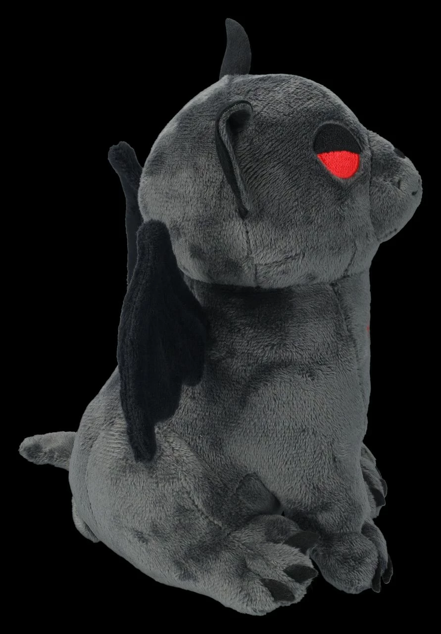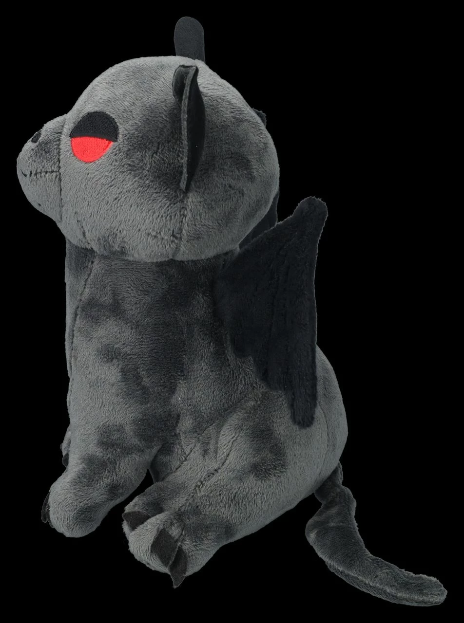 Mäuse werden Katzen stets als Vampire sehen, aber bei dieser putzigen Katze zeigen es auch schon die Fledermausflügel. Und an dem roten Mal auf der Brust und den blutroten Augen kann man auch sehen, dass die Vampir-Katze zum geheimnisvollen Club der Gothic-Kuscheltiere gehört. Das dritte Auge in dem Zeichen zeigt vermutlich, dass sie den Blick für die Zwischenwelt hat. Das putzige Plüschtier aus kuschelig weichem 100 % Polyester ist 19 cm hoch, 15 cm breit und 15 cm tief. Für Babies und Kleinkinder ist die niedliche Vampir-Katze nicht geeignet, aber wer sagt denn, dass nur Kinder Kuscheltiere haben dürfen…. Mit den anderen Kuscheltieren aus dieser Reihe bildet sie gleich eine tolle Gemeinschaft und ist zum Sammeln das perfekte Geschenk.