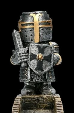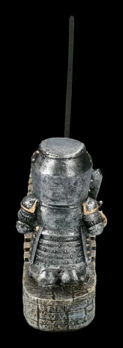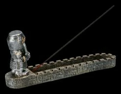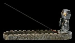 In voller Rüstung und mit Schwert und Schild steht der kleine Ritter auf den Zinnen der Burg und beobachtet ganz genau, ob das Räucherstäbchen in dem fantastischen Räucherstäbchenhalter auch sicher abbrennt. Der tolle Räucherstäbchenhalter ist detailreich aus handbemaltem Kunststein (Polyresin) gefertigt. Er ist 10 cm hoch, 24 cm breit und 4,5 cm tief und ein perfektes Geschenk für alle großen und kleinen Ritter. Räucherstäbchen sind nicht enthalten, es gibt jedoch eine große Auswahl in unserem Shop.
