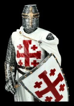 Die Grabesritter Figur stellt einen Ritter aus dem Orden vom Heiligen Grab zu Jerusalem dar. Der prächtige Ritter mit dem Wappen auf dem großen Schild und dem Schwert ist bis zur Ritterrüstung sehr ausführlich aus Kunststein (Polyresin) gefertigt und mit vielen Details sorgsam handbemalt. Die außergewöhnliche Ritter Figur ist 18 cm hoch, 7,5 cm und 6 cm tief. Sie ist sicher für alle Sammler von Ritter Figuren ein interessantes Geschenk.