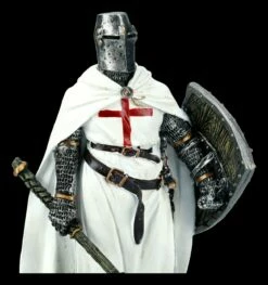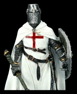 Mit der großen Axt und dem Schild ist der Tempelritter im weißen Umhang sehr detailreich aus Kunststein (Polyresin) gefertigt. Die Ritter Figur ist bis zu den kleinsten Details sorgsam handbemalt. Sie ist 17,5 cm hoch, 10,5 cm und 8 cm tief. Für Sammler von Ritter Figuren ist der großartige Tempelritter im weißen Umhang ein interessantes Geschenk.