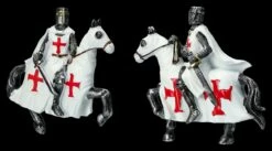 Das fantastische Magnete-Set mit den Kreuzrittern aus handbemaltem Kunststein (Polyresin) besteht aus 2 x 6 Rittern mit unterschiedlichen Schwertern. Mit den leuchtend roten Kreuzen auf ihren weißen Umhängen und den ebenfalls weißen Decken der Pferde mit roten Kreuzen sind die Ritter-Magnete nicht nur sehr dekorativ, sondern auch sehr praktisch. Die Ritter sind jeweils 8 cm hoch, 9 cm breit und 1,5 cm tief. Dieses herrliche 12er Set Magnete mit Kreuzrittern auf ihren Pferden sind ein perfektes Geschenk und fantastisch dazu geeignet, mit Ritter-Freunden geteilt zu werden.