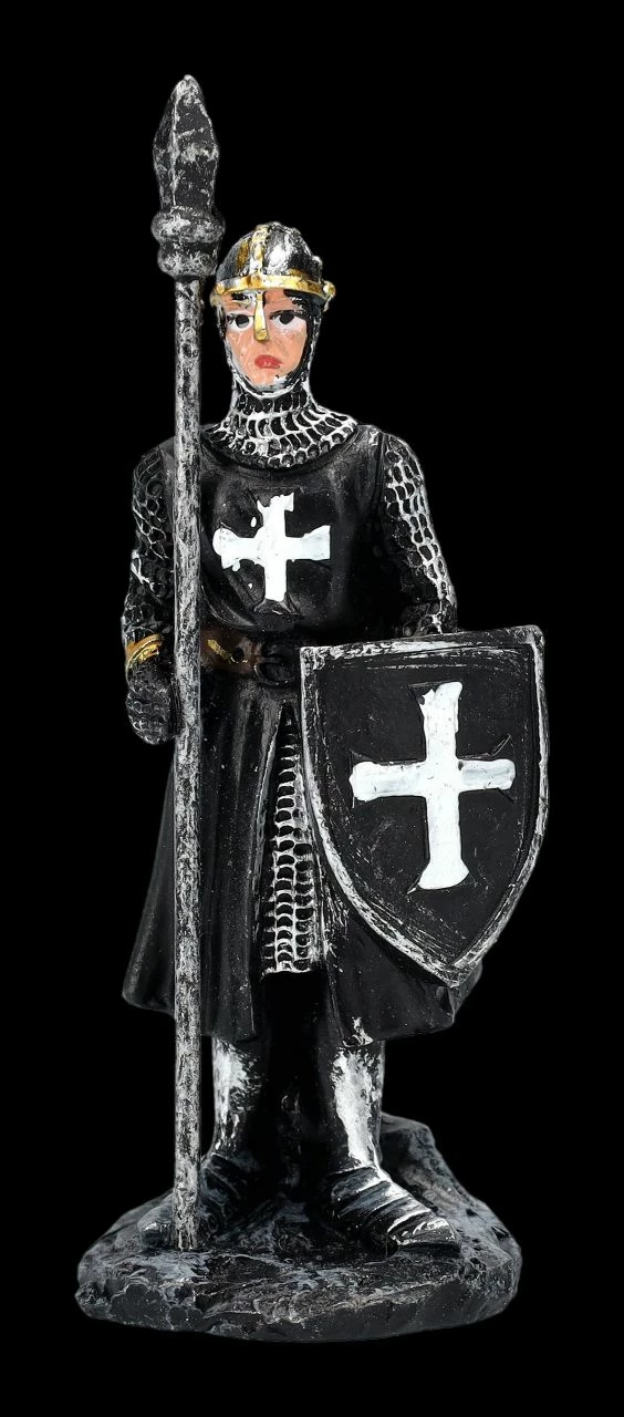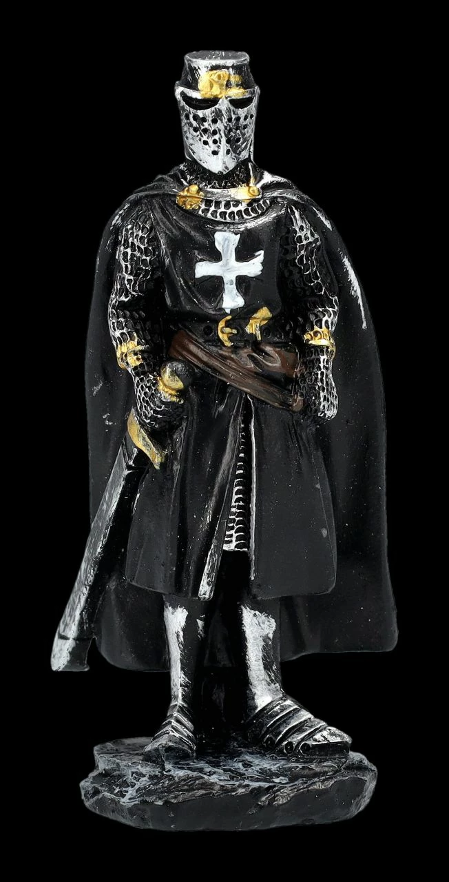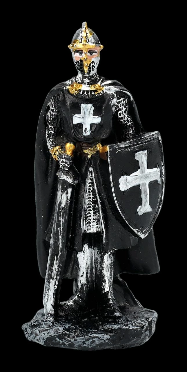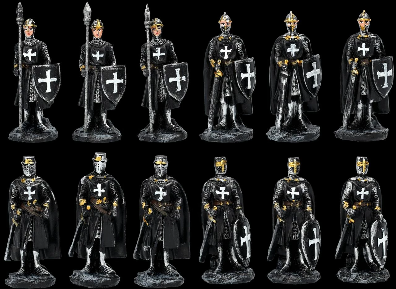 In schwarzer Rüstung mit weißen Kreuzen wurden die 12 unterschiedlichen Kreuzritter mit goldfarbenen Akzenten handbemalt. Die schwarzen Ritterfiguren wurden detailreich aus Kunststein (Polyresin) gefertigt und sind 7,5 – 8,5 cm hoch, 3,5 – 4,5 cm breit und 3 – 3,5 cm tief. Sie sind ein tolles Geschenk für jeden Ritter-Fan, der sich über die Kreuzritter in schwarzer Rüstung im 12er Set sicher freuen wird. Gemeinsam mit den silberfarbenen und den weißen Ritterfiguren aus dieser Serie können die 12 schwarzen Kreuzritter eine ganze Ritterlandschaft bereichern.