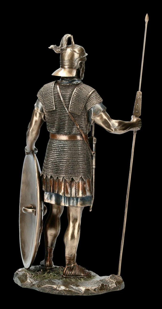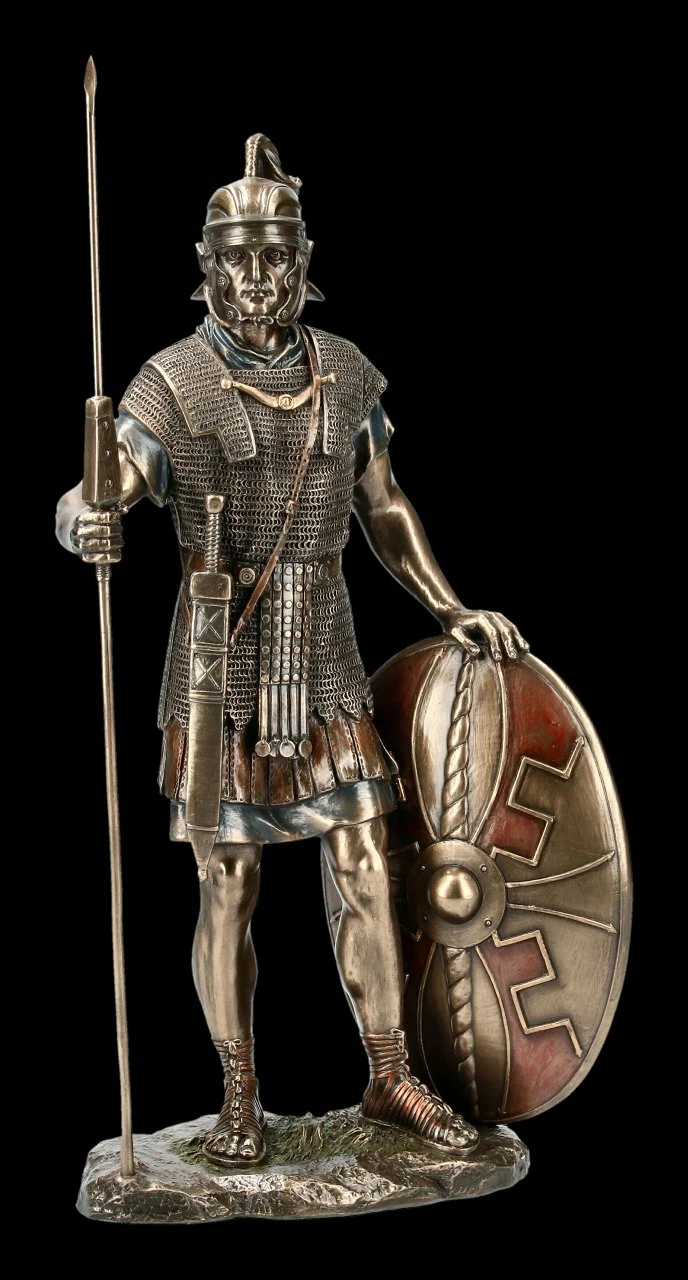 Der römische Ritte hält mit seinem Speer lässig Wache.