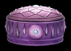 Die wunderschöne lila Schatulle aus Kunststein (Polyresin) in Form eines Traumfängers ist liebevoll handbemalt und mit Schmucksteinen versehen. Sie ist 3 cm hoch, 12 cm breit und 12 cm tief und hat innen mit H: 3,5 cm x B: 9 cm x T: 9 cm ausreichend Platz für ein kleines Geheimnis. Sie ist zum Beispiel aber auch sehr gut als Verpackung für ein traumhaftes Schmuckgeschenk geeignet.