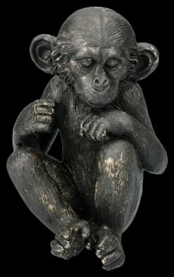 Die drei kleinen Schimpansen-Baby-Figuren demonstrieren einfach perfekt, dass sie nichts Böses sehen, hören und sagen möchten. Während sich eines der niedlichen Schimpansen die Augen zuhält und der dritte den Mund, versuchen die beiden, ihre Finger in die Ohren des in der Mitte sitzenden dritten Schimpansen zu stecken. So jung und schon so schlau! Die drei kleinen Schimpansen-Babys sind fantastisch detailreich aus Kunststein (Polyresin) gefertigt und liebevoll von Hand bemalt. Sie sind 14,5 – 15,5 cm hoch, 10 – 14,5 cm breit und 9 – 9,5 cm tief. Die niedlichen kleinen Schimpansen-Baby-Figuren sind ein effektvoller Blickfang.