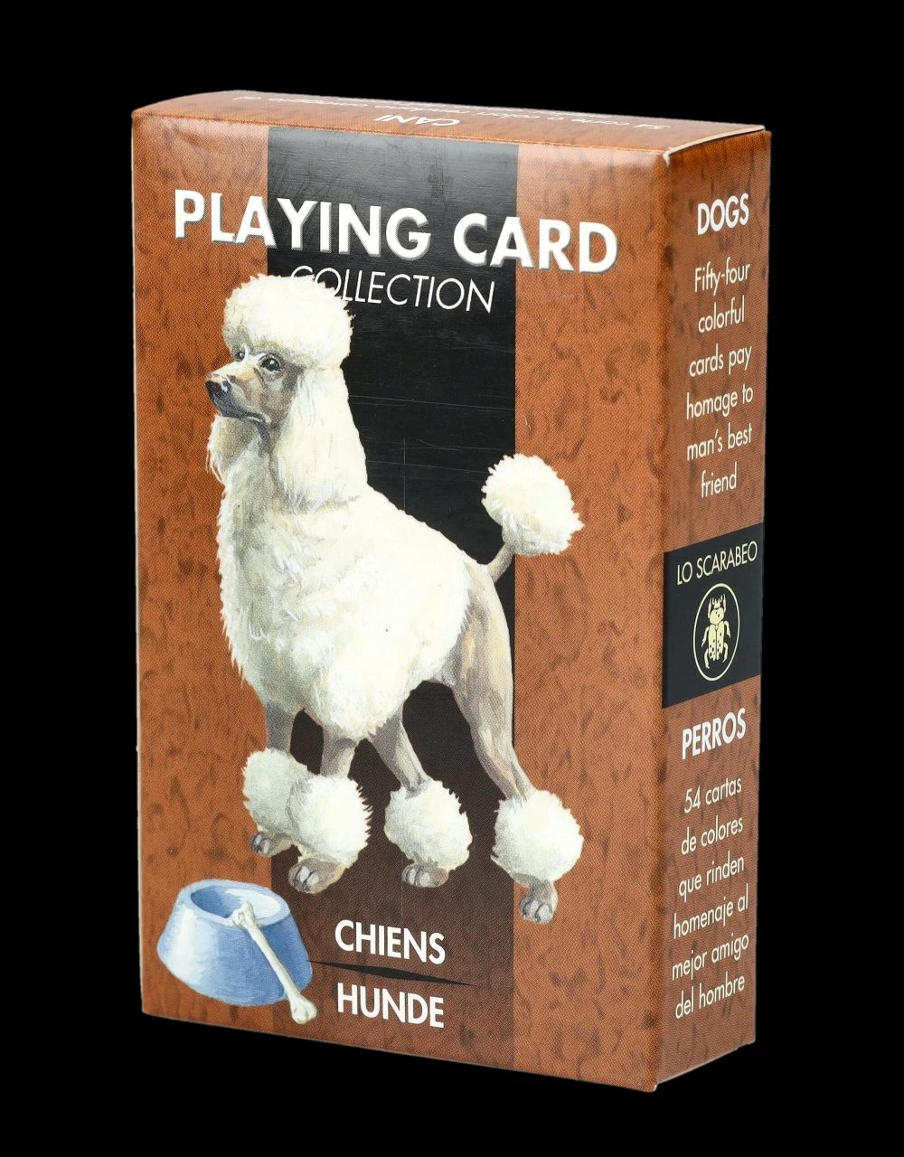 Mit diesem Kartenspiel kann man sogar sein Wissen über die unterschiedlichsten Hunderassen testen. Dieses Deck von Lo Scarabeo beinhaltet 54 Spielkarten mit toll gezeichneten Hunden. Mit Freunden und den Hunden einen langen Spaziergang machen und dann einfach mal wieder Karten zu spielen, ist doch ein guter Plan… Die Karo, Kreuz, Pik und Herz Spielkarten, jeweils von 2 bis As + Joker sind aber auch ein tolles Mitbringsel zu einem Spieleabend. Die bedruckte Spielverpackung ist 9,5 cm hoch, 6 cm breit und 2 cm tief.