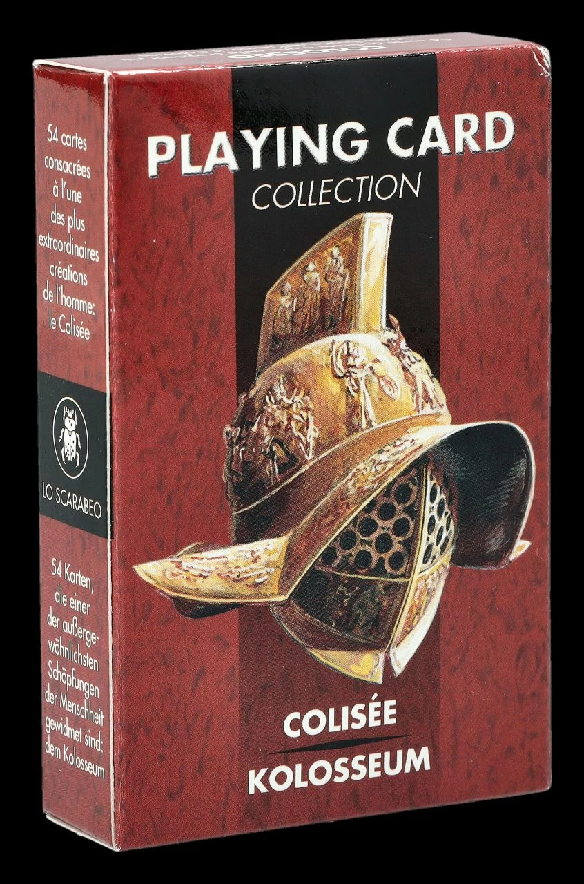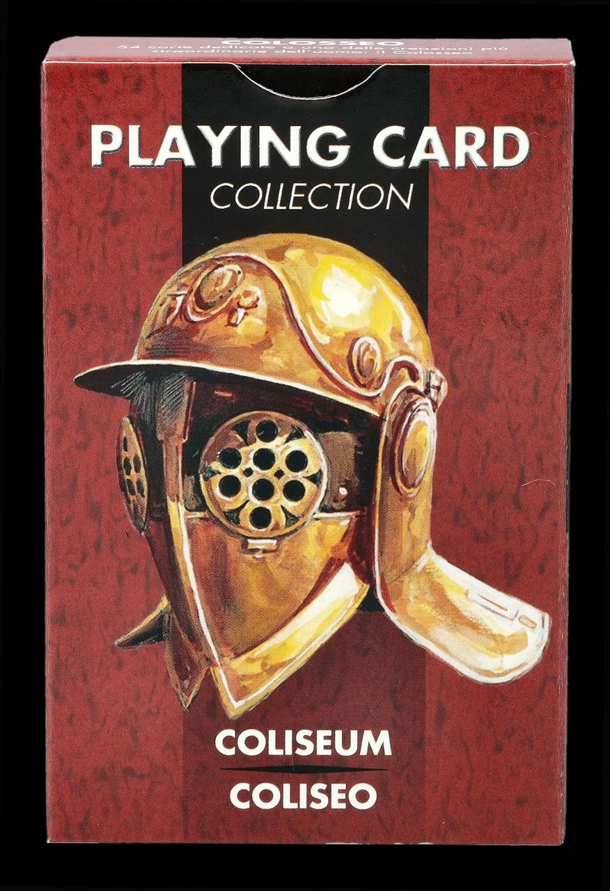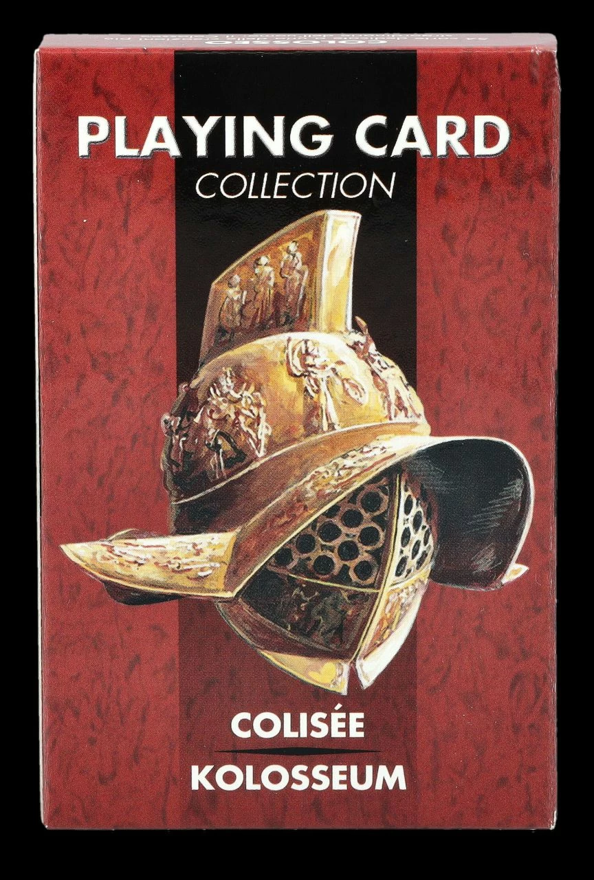Es wird Zeit mit Freunden mal wieder Karten zu spielen. Mit diesem Deck, das einer der außergewöhnlichsten Bauten der Menschheit gewidmet ist, macht es sicher viel Spaß. 54 Spielkarten, die der berühmtesten Arena, dem Kolosseum in Rom, gewidmet sind, zeigen in Bildern Rom und Römer zur Zeit der Gladiatorenkämpfe. Die Karo, Kreuz, Pik und Herz Spielkarten, jeweils von 2 bis As + Joker von Lo Scarabeo sind auch ein tolles Mitbringsel zu einem Spieleabend. Die bedruckte Spielverpackung ist 9,5 cm hoch, 6 cm breit und 2 cm tief.