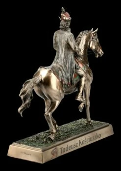 Außerordentlich detailreich und sehr edel bronziert und coloriert zeigt diese fantastische Figur von Veronese den polnischer Ingenieur Andrzej Tadeusz Bonawentura Kościuszko, der als Anführer im Russisch-Polnischen Krieg von 1792 zum polnischen Nationalhelden wurde. Die effektvolle Reiter-Figur sitzt mit gezogenem Schwert auf seinem wunderbar dargestellten Pferd. Auf dem Podest ist der Name Tadeusz Kościuszko zu lesen. Die prachtvolle Reiterstatuette ist 27 cm hoch, 25 cm breit und 8 cm tief. Sie ist nicht nur eine auffallende Deko, sondern auch ein tolles Geschenk für alle Bewunderer des Nationalhelden und wird inklusive Geschenkverpackung verschickt.