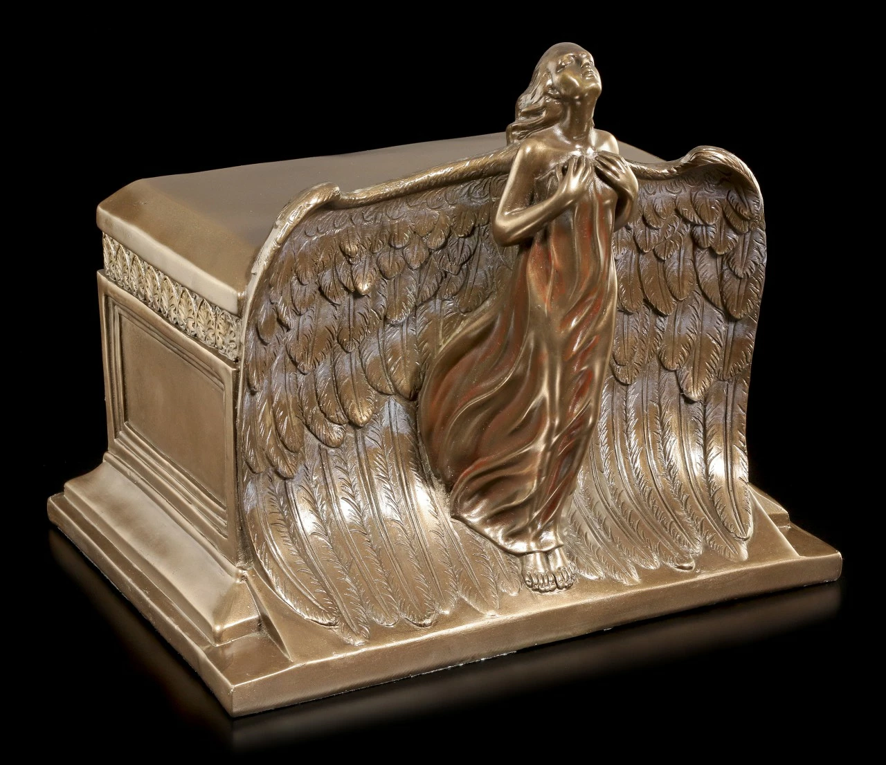Es ist immer schwer, sich von einem geliebten Tier zu verabschieden. Möchten Sie Ihren Liebling auch nach dem Ableben noch nahe bei sich haben? Mit dieser wundervollen bronzierten Kunststein Engel Urne schaffen Sie ein ansprechendes und liebevolles neues Zuhause für Ihren treuen Begleiter.