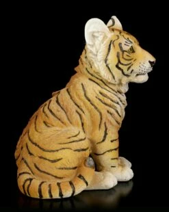 Das niedliche Tiger Baby sitzt versteckt im Dickicht und wartet auf seine Mama. Er ist ganz aufmerksam und beobachtet das Treiben um sich herum um ganz viel zu lernen. Die Kunststein Figur aus handbemaltem Kunststein wird Sie begeistern wenn Sie Raubkatzen lieben.