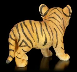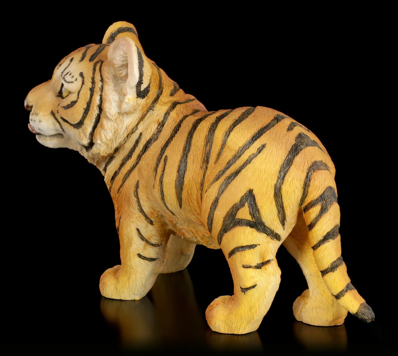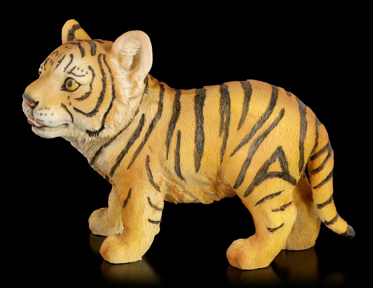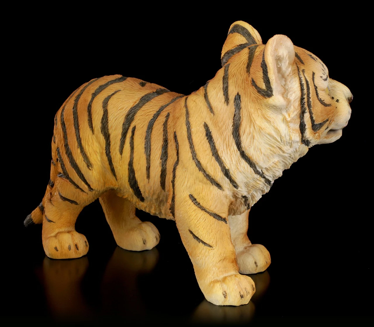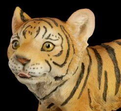Frech streckt das Tiger Baby seine Zunge raus. Hat es gerade etwas leckeres gefressen oder getrunken? Die wundervolle Kunststein Figur wurde liebevoll handbemalt und ist für Raubkatzen Fans ein tolles Geschenk.