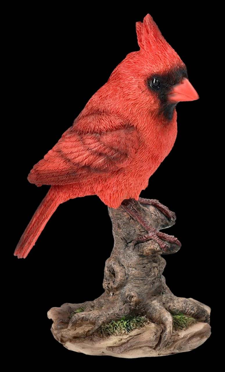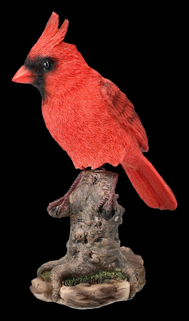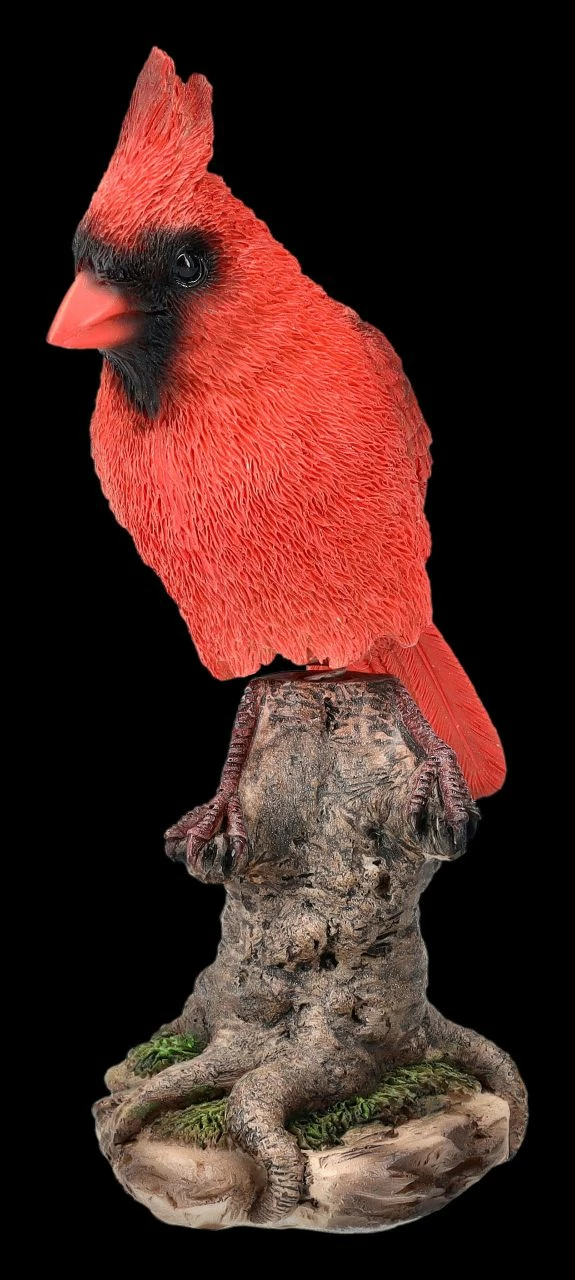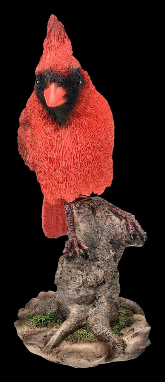 Der Rote Kardinal oder auch Rotkardinal ist durch seine leuchtende Farbe einer der auffĂ€lligsten Vögel in Nordamerika, der besonders im Winter durch seine fröhliche Farbe jeden begeistert. Neben dem scharlachroten Gefieder ist auch die Federhaube, die MĂ€nnchen und Weibchen gleichermaĂen tragen, ein besonderes Merkmal dieser Vogelart. Bei dieser Vogel-Figur sitzt der wackelnde Rote Kardinal durch eine Feder gehalten auf einem Ast und scheint die Umgebung genau zu beobachten. Durch das Wackeln wirkt der Rote Kardinal richtig lebendig. Die 16,5 cm hohe, 8 cm breite und 10 cm tiefe Vogel-Figur wurde von HotAnt in gewohnter Weise aus liebevoll handbemaltem Kunststein (Polyresin) gefertigt. Eine tolle Deko, die zwischen grĂŒnen BlĂ€ttern fĂŒr einen auffĂ€lligen Farbtupfer sorgt, aber auch ein fantastisches Geschenk fĂŒr alle Vogelfreunde.