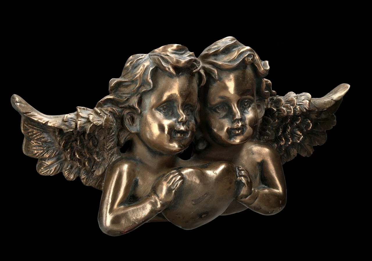 Zu der großen Engelschar in unserem Shop gehört auch diese romantische Wanddeko mit den beiden Putten, die jedem Betrachter das Herz der Liebe präsentieren. Die Wanddeko mit den beiden Putten wurde aus bronziertem Kunststein (Polyresin) gefertigt. Die Wanddeko ist 11,5 cm hoch, 23 cm breit und 4 cm tief und auch ein wunderbares Geschenk für den Engel Ihres Herzens.