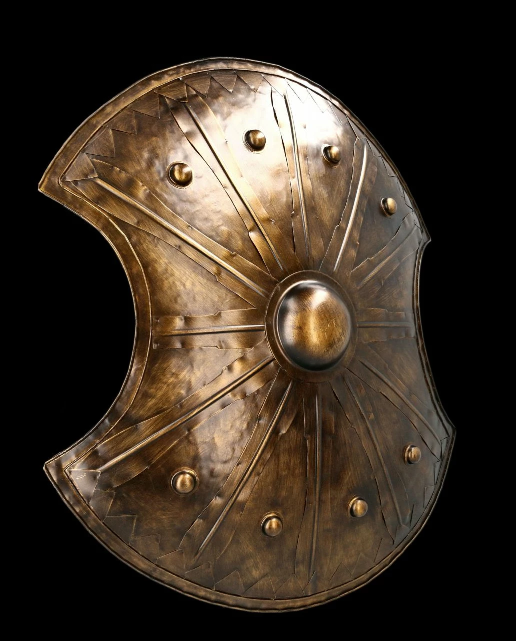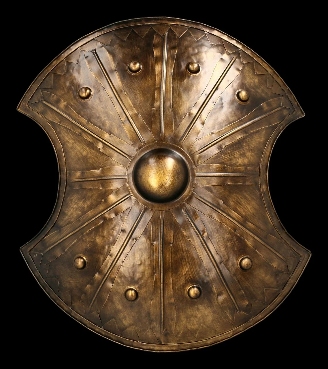 Außerordentlich beeindruckend ist diese fantastische Wanddeko. Sie ist dem Schild eines trojanischen Soldaten nachempfunden, der im trojanischen Krieg kämpfte. Wie von Homer in seiner Ilias in zahlreichen Versen geschildert, wurde der Krieg durch die Entführung der schönen, mit dem Spartanerkönig Menelaos verheirateten Helena durch den trojanischen Prinzen Paris, der sich unsterblich in sie verliebt hatte, ausgelöst. Das großartige Trojanische Schild ist sehr edel aus Metall gefertigt und hat eine Höhe von 70 cm, eine Breite von 62 cm und eine Tiefe von 10 cm. Ein wirklich wunderbares Accessoire für jeden, der von den Geschichten aus der griechischen Mythologie fasziniert ist.