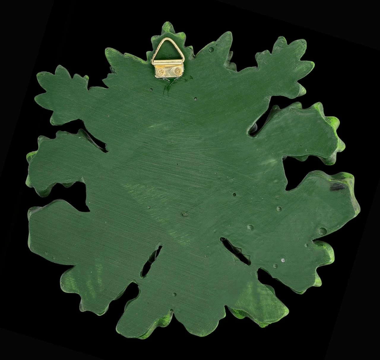 Grüne Blätter bilden Haare und Bart des Blatt-Bärtigen Greenman bei diesem symbolhaften Wandrelief. Es zeigt das ernst blickende Gesicht des Greenman, der auch als ‚Gott mit den Blättern‘ bezeichnet wird. Als spirituelles Symbol, das die Harmonie von Geist und Natur verkörpert, ist dieses Wandrelief auch ein wunderbares Geschenk. Das 18 cm hohe, 19,5 cm breite und 2,5 cm tiefe Wandrelief zum Hängen ist detailreich aus Kunststein (Polyresin) gegossen und wurde von Hand bemalt.