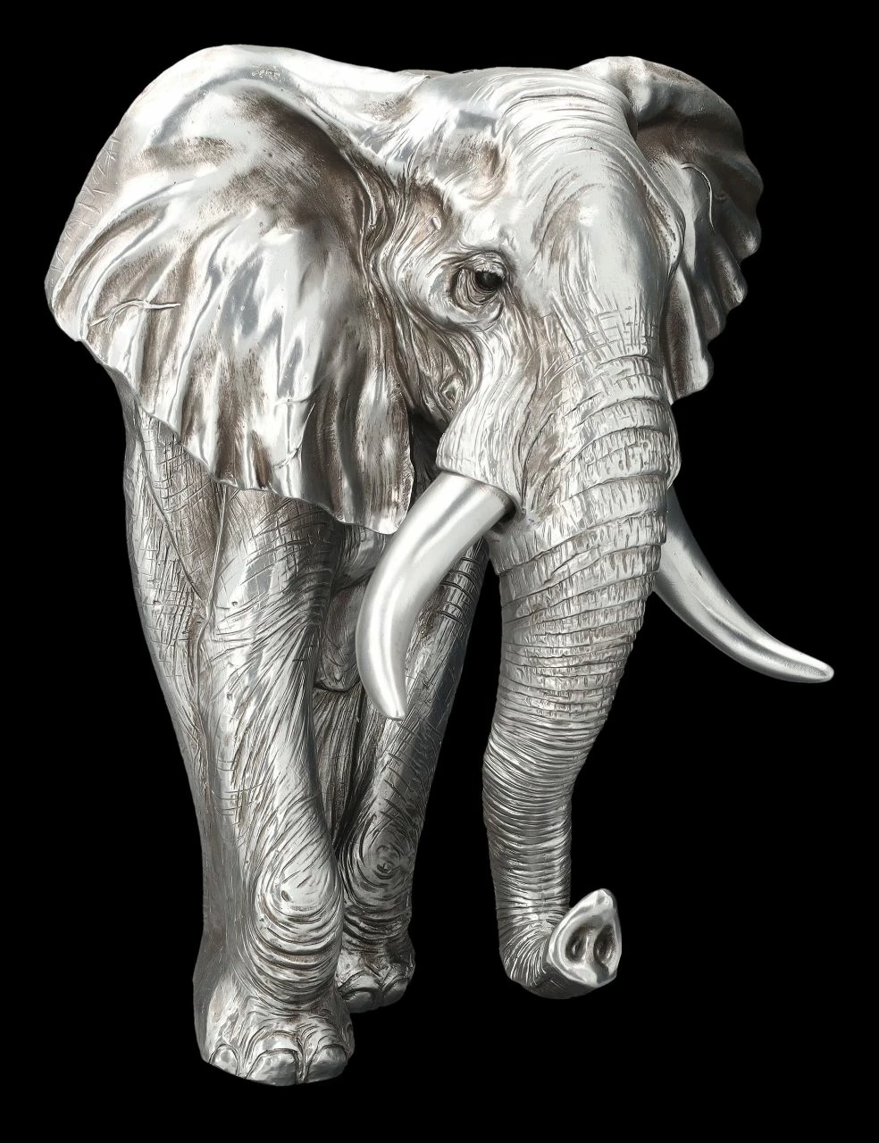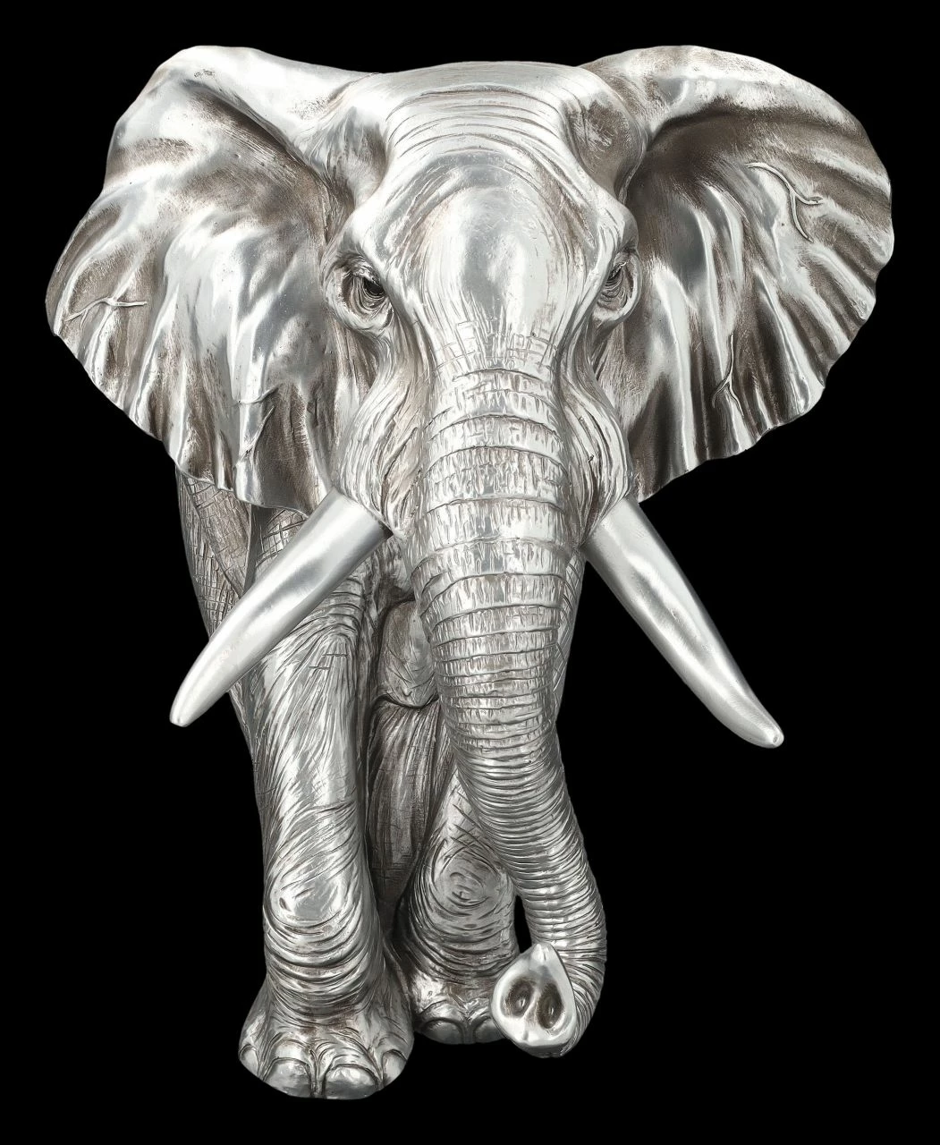 Ein Elefant bricht durch die Wand – ein wahrlich ungewöhnliches Wandrelief, das sicher Begeisterung hervorrufen wird. Der wunderbare Elefant aus sorgfältig und außerordentlich detailreich gegossenem Kunststein (Polyresin) wird durch die silberfarbene Handbemalung in jedem Ambiente zum sofortigen Blickfang. Vor allem mit der richtigen Beleuchtung wird der silberfarbene Elefant ein absoluter Hingucker. Das 40 cm hohe, 32 cm breite und 19,5 cm tiefe Wandrelief ist zum Hängen und passt auch ausgezeichnet in eine moderne Umgebung. Ob zu Hause oder im Arbeitsbereich, dieses fantastische Wandrelief mit dem silbernen Elefanten sollte am besten einen Platz in einem Eingangsbereich oder über einem Schreibtisch bekommen, wo es sofort entdeckt wird. Er ist auch ein perfektes Geschenk für jeden, der von der Stärke und Kraft der Elefanten fasziniert ist.