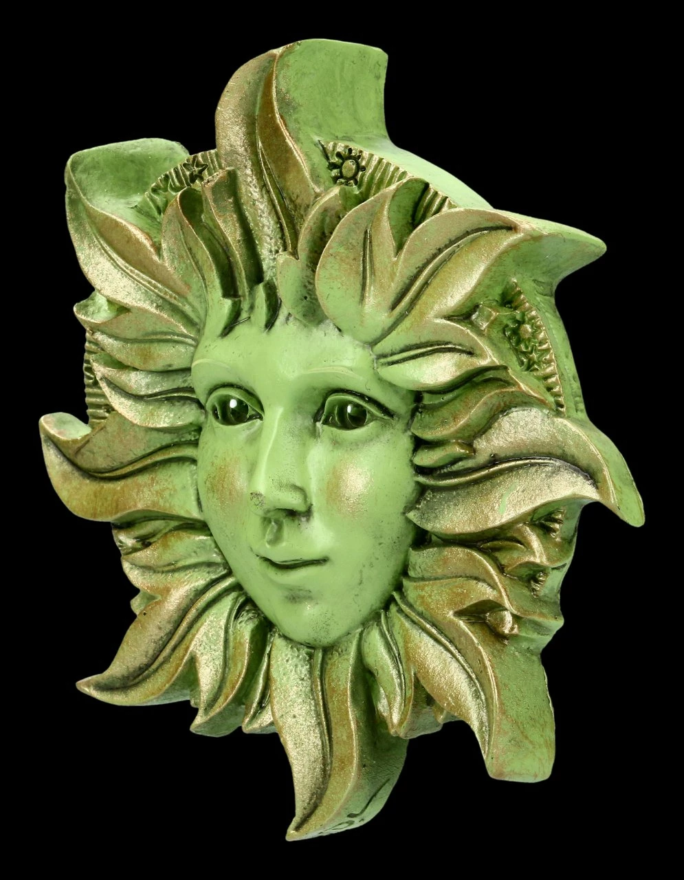 Ob zur Winter- oder Sommer-Sonnenwende, der schöne, mit den Blättern einer Sonnenblume umrandete Naturgeist demonstriert mit dem jugendlichen Gesicht den Neuanfang. Das kunstvolle Wandrelief von David Lawrence ist aus handbemaltem Kunststein (Polyresin) gefertigt und beschützt den natürlichen Bereich Ihrer Wohnung. Der schöne Naturgeist Solstice als Wanddeko ist 12,5 cm hoch, 11,5 cm breit und 3 cm tief und hat auf der Rückseite die Möglichkeit zum Hängen.