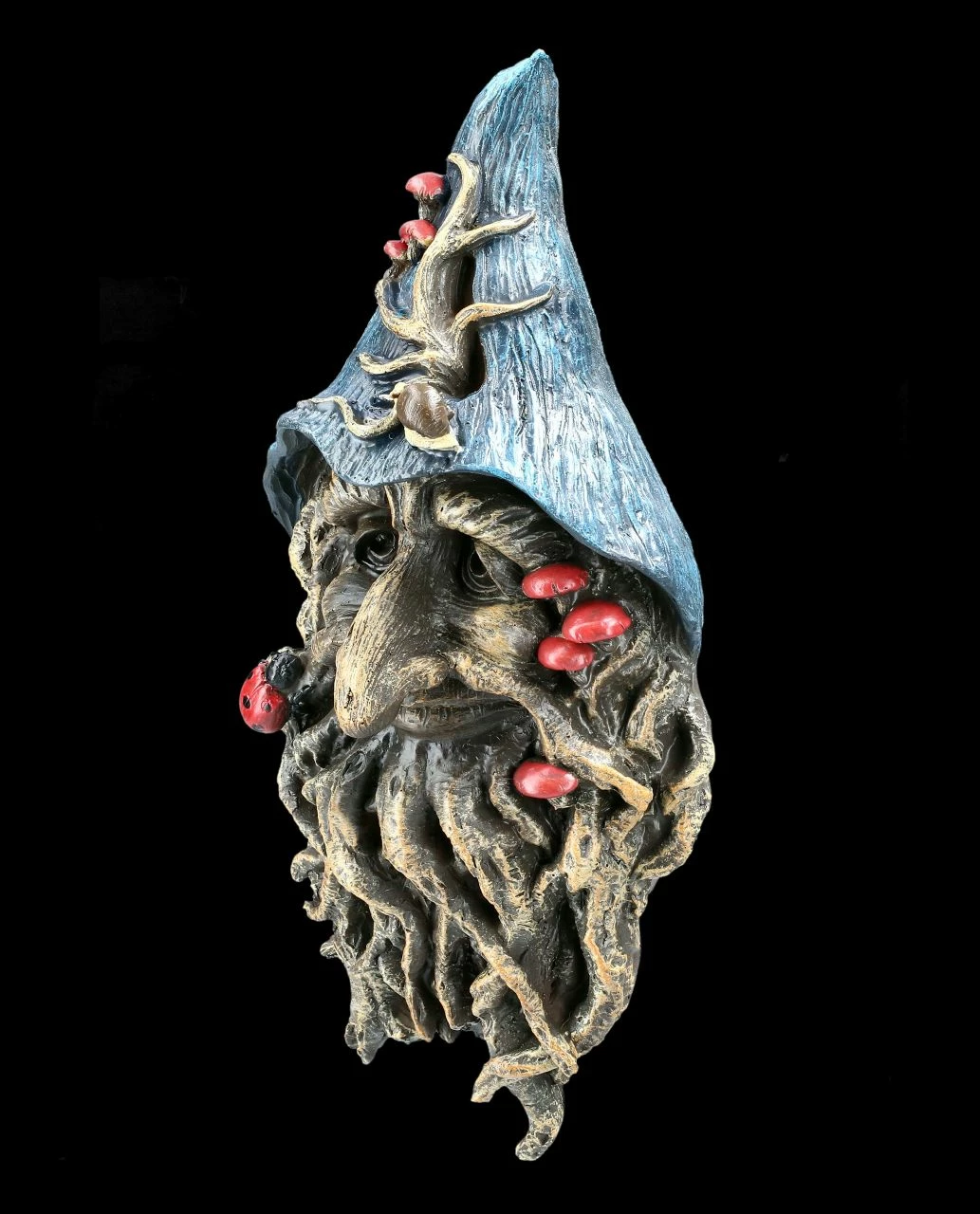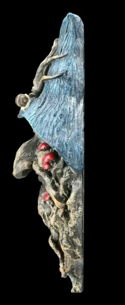 Entrückt lächelnd blickt der Greenman Magier Gwydion von Ihrer Wand auf die Bewohner..Als schützender Waldgeist behütet er die Natur, aber auch Ihr Heim. Der blaue Hut, der Bart und die roten Pilze geben ihm eine magische Note Das Relief aus handbemaltem Kunststein (Polyresin).ist 31,0 cm hoch, 15,0 cm cm breit und 8,0 cm tief und bringt Ihrer Wohnung den Schutz der Natur.