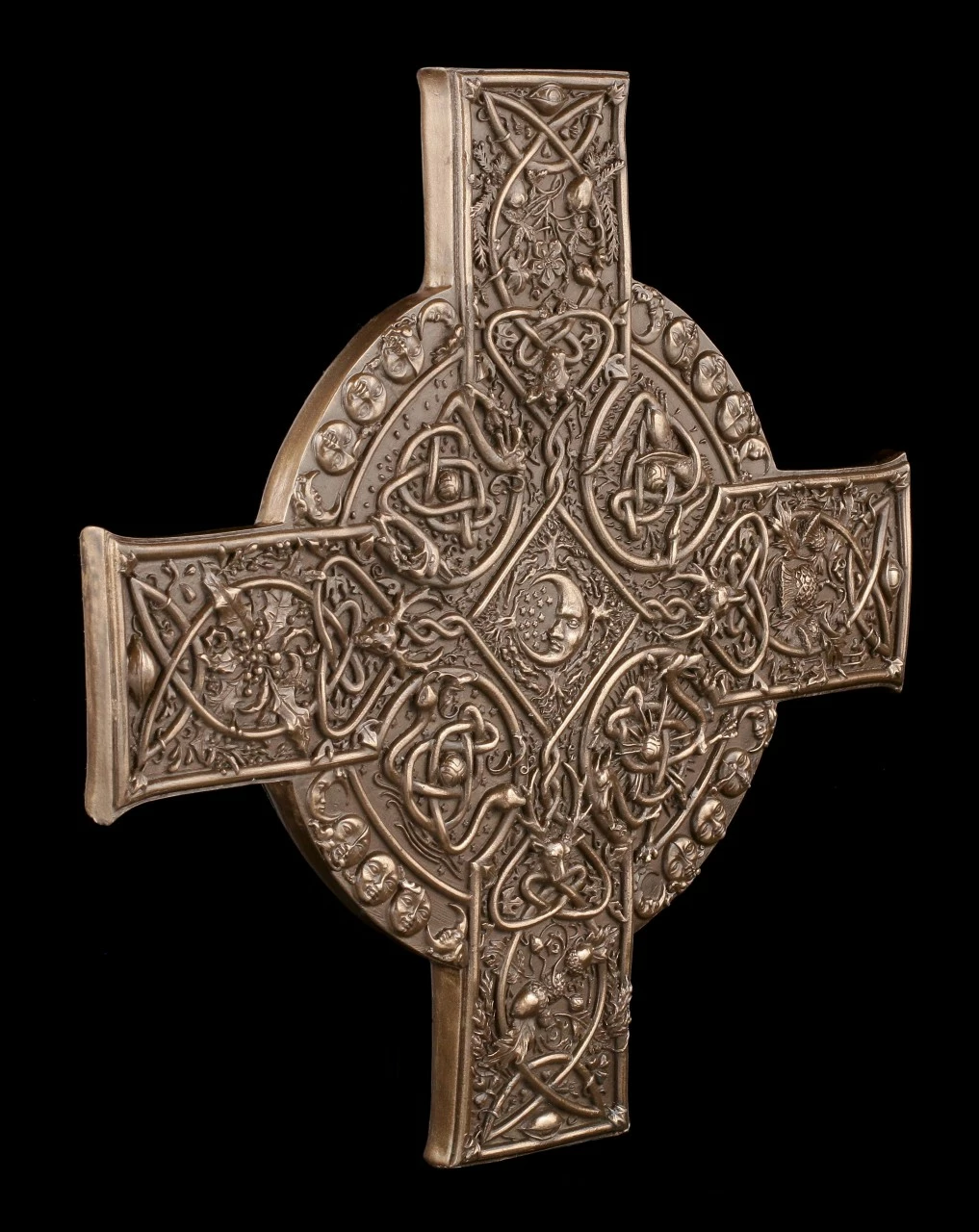 Verziert mit den Blättern und Früchten der Stechpalme, mit Eicheln und den Mondzyklen ist dieses detailreiche bronzierte Kunststein Wandrelief ein Highlight für jeden Liebhaber keltischer Mythologie.