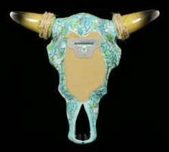 Dieser außergewöhnliche Bullenschädel schmückt stilvoll Ihre Wand. Das Wandrelief hebt sich mit seiner türkisen Farbe gezielt hervor und verströmt einen Hauch vom Wilden Westen.