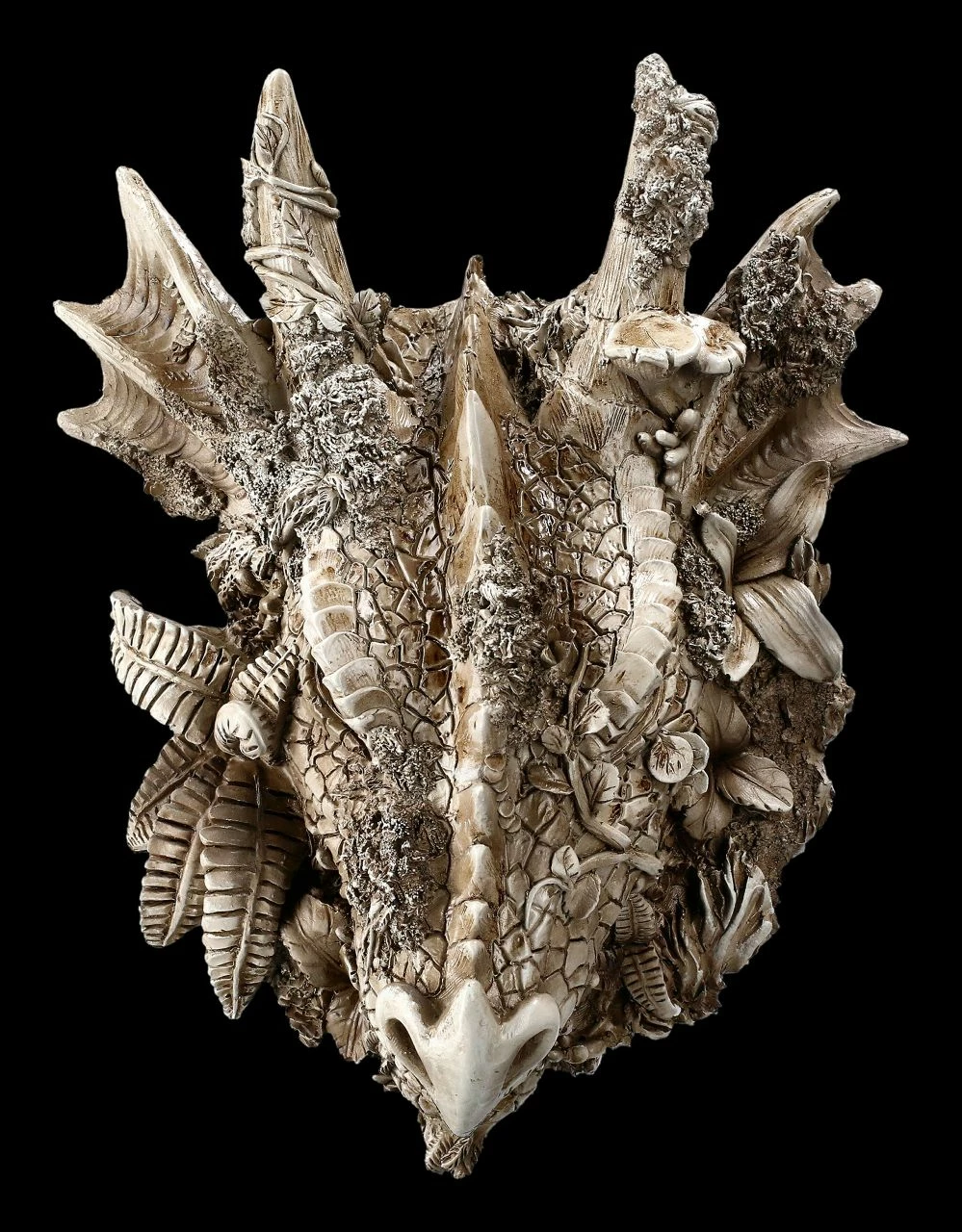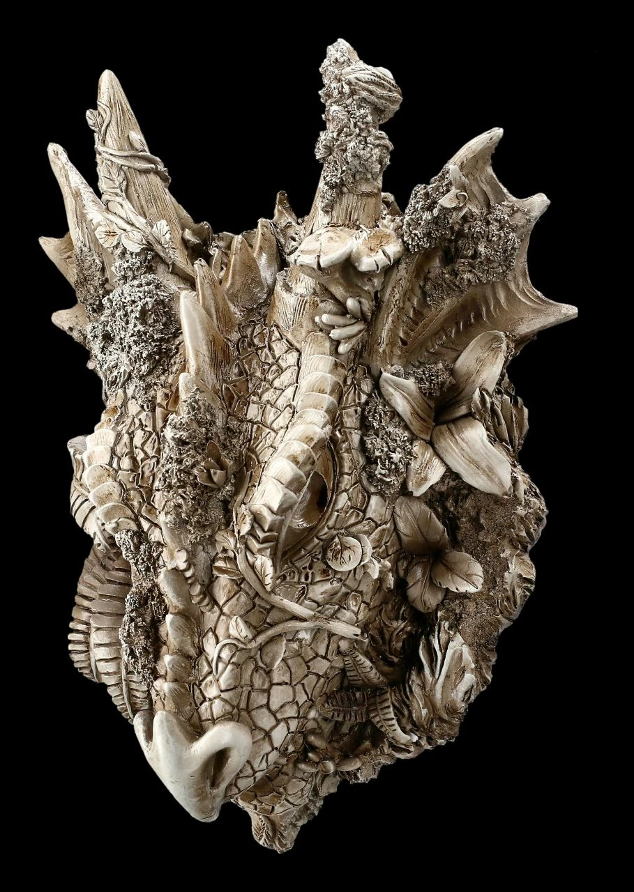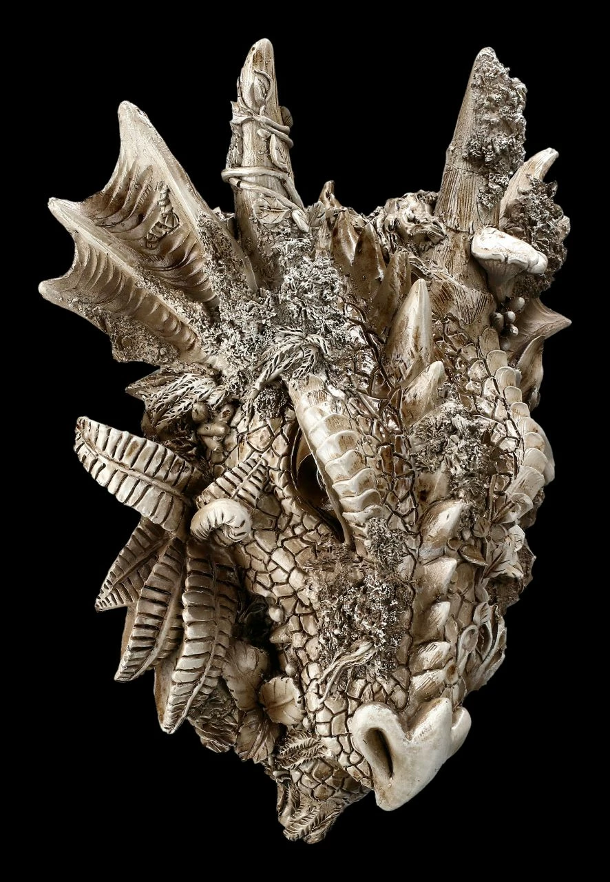 Das fantastische Wandrelief zeigt den Kopf eines Drachens aus dem mystischen Waldland. Der außergewöhnliche Drachenkopf ist sehr detailreich aus Kunststein (Polyresin) gefertigt und sorgfältig handbemalt. Dieser schöne Drachenkopf mit der Höhe von 22 cm, der Breite von 17 cm und der Tiefe von 8,5 cm ist eine fantasievolle Dekoration für die Wand und sollte am besten da aufgehängt werden, wo er sofort entdeckt werden kann.