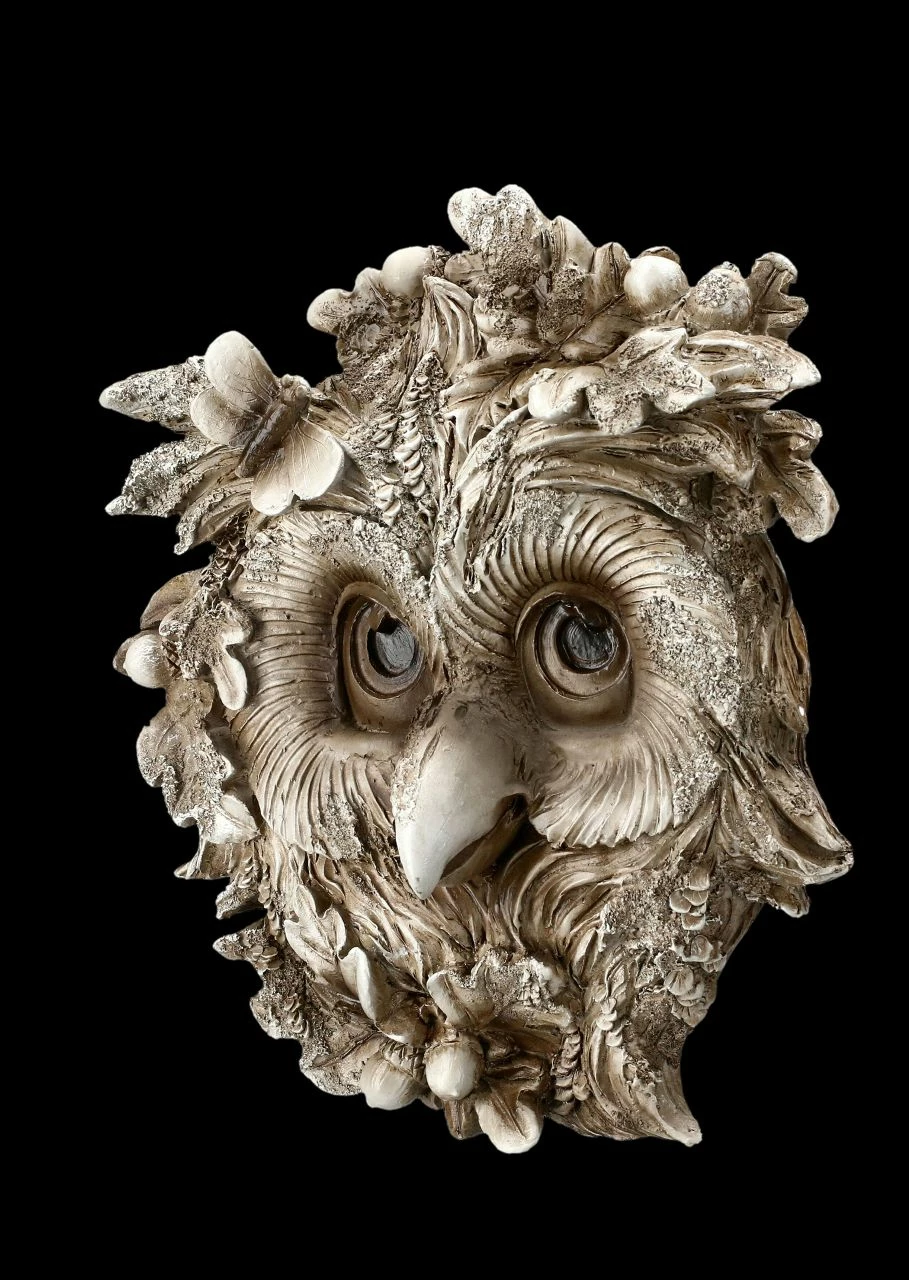 Mit ihren klugen Augen hat die weise Eule aus dem Waldland alles gut im Blick. Deses außergewöhnliche Wandrelief mit dem zwischen Blättern hervorschauenden Eulenkopf ist sehr detailreich aus Kunststein (Polyresin) gefertigt und sorgfältig von Hand bemalt. Das ungewöhnliche Wandrelief mit dem Eulenkopf aus dem Waldland ist 20 cm hoch, 18 cm breit und 5 cm tief und hat eine Aufhängung auf der Rückseite. Es ist auch ein ganz besonderes Geschenk für jeden Eulen- und Naturliebhaber und wird garantiert zum sofortigen Blickfang für jede Wand.