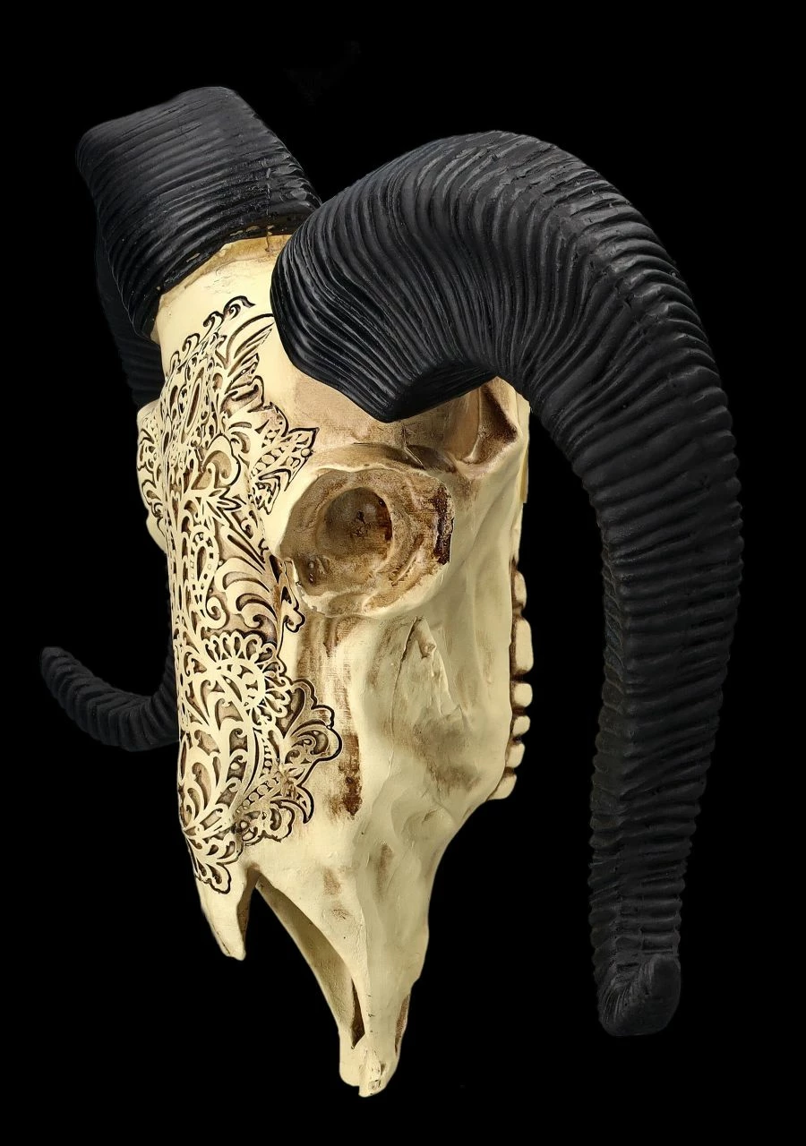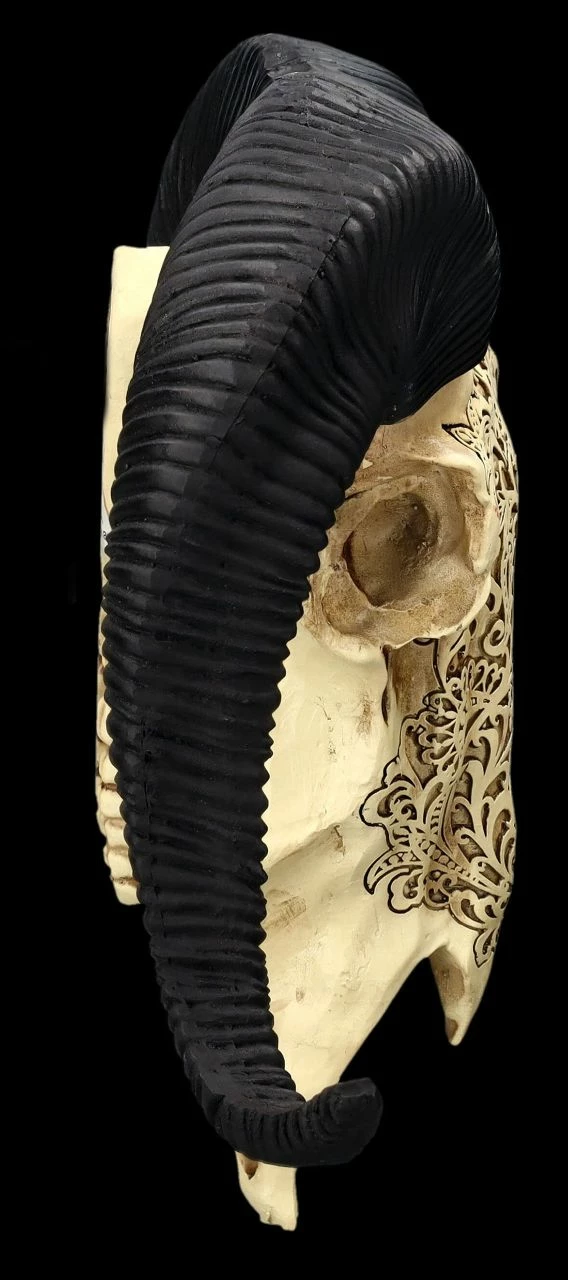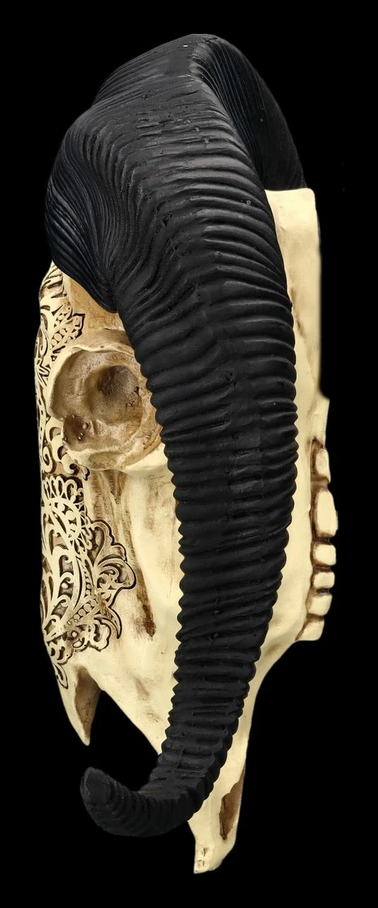 Widder-Totenkopf mit kraftvollen Verzierungen