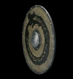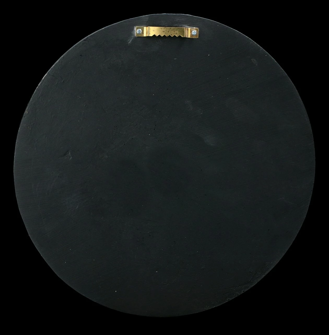 Wie aus einem edlen Hartholz gearbeitet und mit Eisenbeschlägen versehen, sieht dieses detailreiche Wikinger Schild mit dem fein herausgearbeiteten schwarzen Drachen aus. Das ausgefallene Wikinger Schild ist sorgfältig aus Kunststein (Polyresin) gearbeitet und sehr realistisch handbemalt. Mit seinem Durchmesser von 31,5 cm und der Tiefe von 3 cm schmückt das imposante Wandrelief jedes Zuhause eines Wikingers.