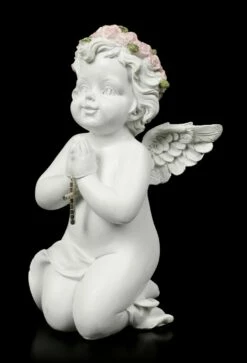 Der betende Engel ist nicht nur zur Weihnachtszeit eine besinnliche Dekoration. Der handbemalte Engel wird auf einem Tisch oder Regal zu einem eleganten Blickpunkt. Ein besonderes Highlight ist das mit Schmucksteinen verzierte Kreuz.