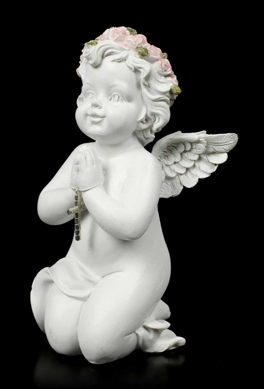 Knieende Cherub Figur mit Kreuz