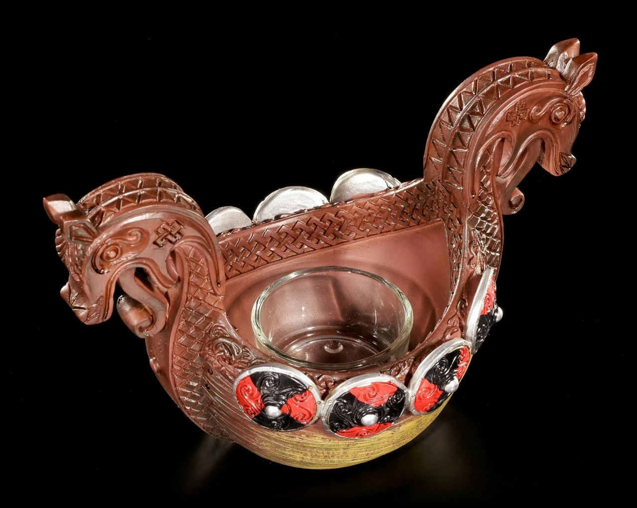 Zur Zeit der Wikinger wurden verstorbene Odinsverehrer Feuer bestattet. Dieser schöne Teelichthalter im Look eines Langbootes soll an diese Tradition erinnern.