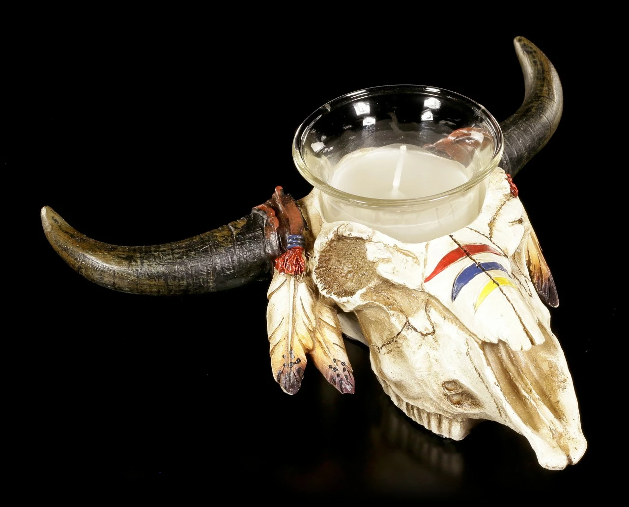 Haben Sie eine texanische Gartenlaube? Oder lieben Sie den Wilden Westen? Dieser kleine Bison-Schädel Teelichthalter ist die perfekte Dekoration.