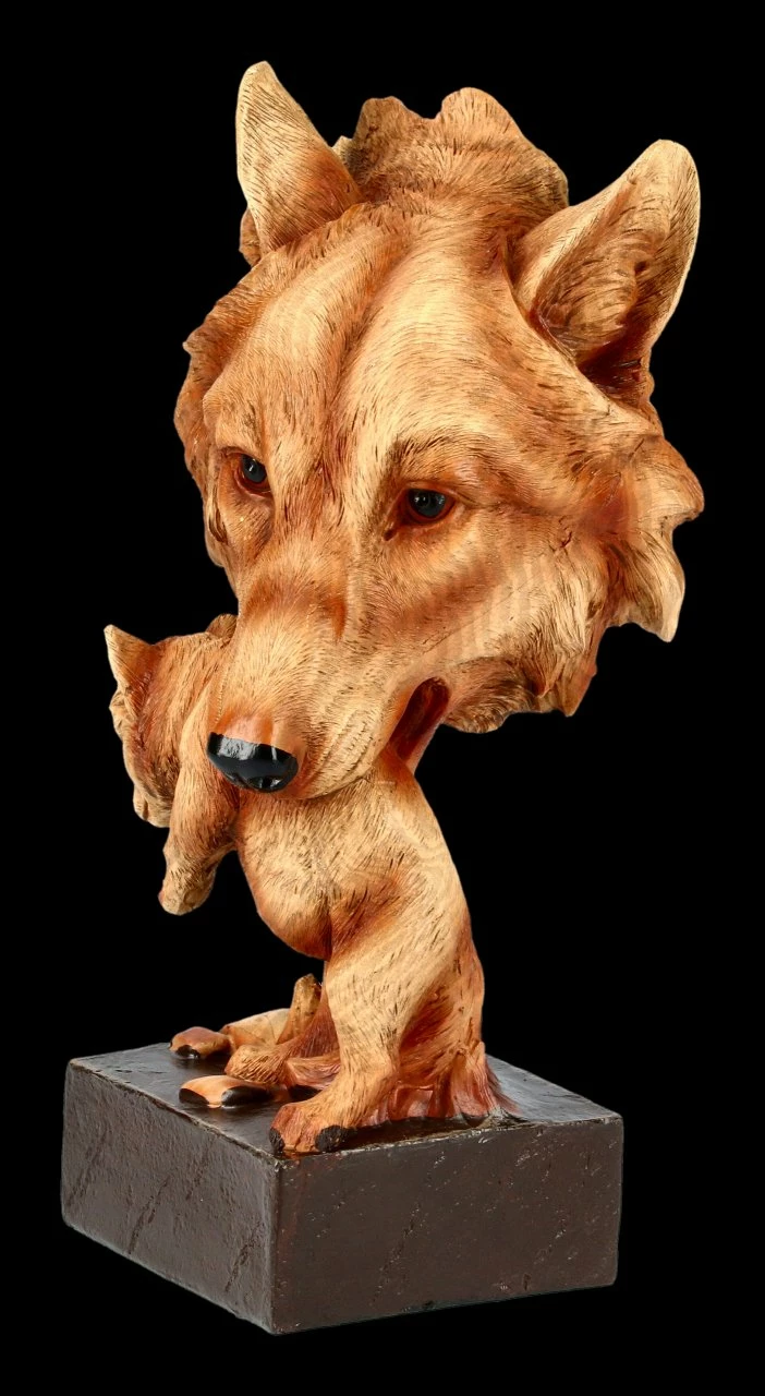Wunderschöne Dekofigur: Wolfmutter mit Welpe im Maul