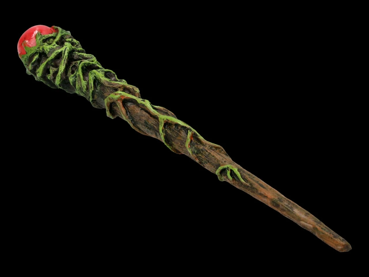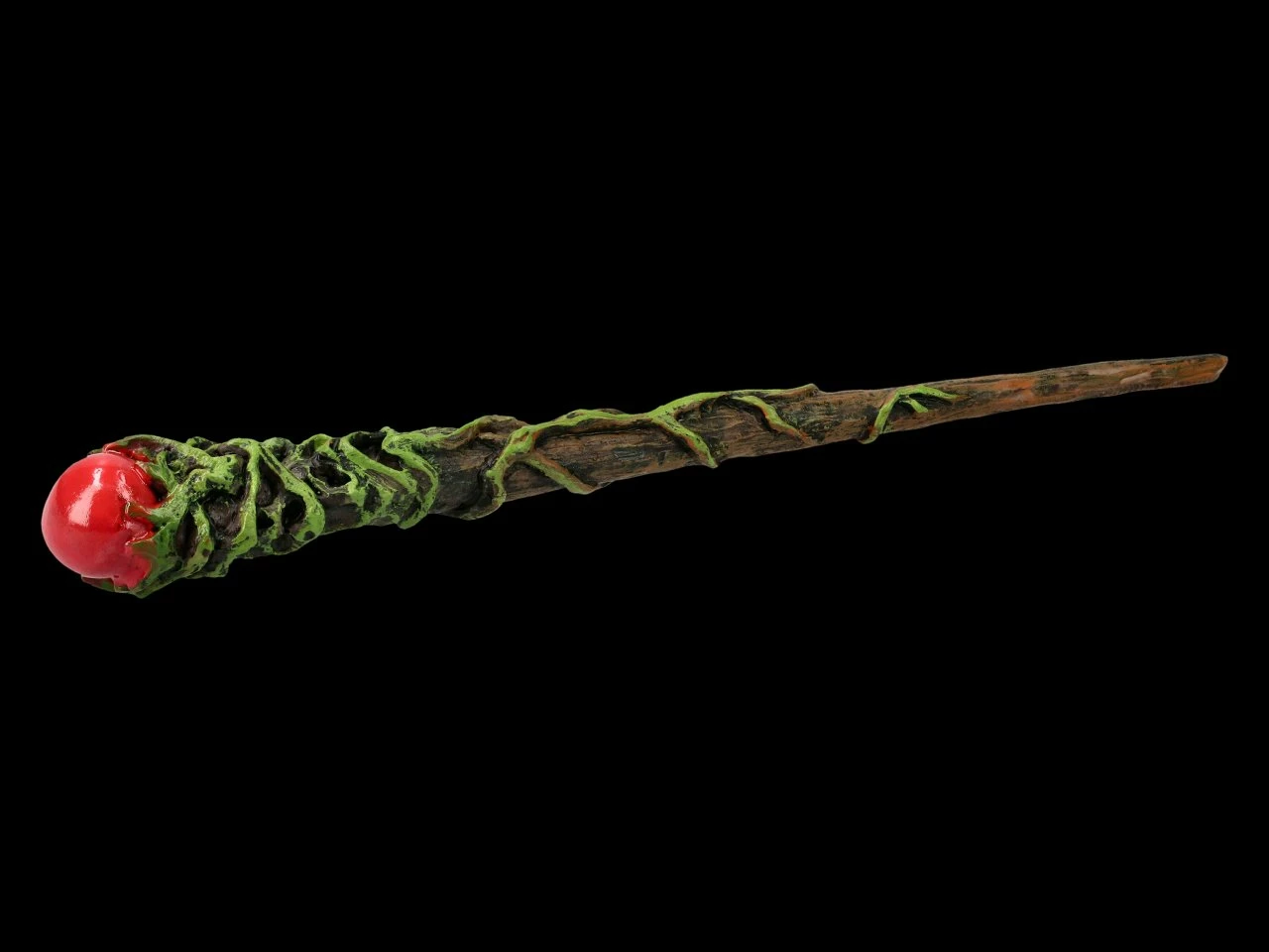 Kann der magische Zauberstab mit der leuchtend roten Spitze die Natur beeinflussen? Wer weiß – vielleicht ist es mit dem richtigen Zauberspruch möglich, denn schließlich ist es ein Greenman Zauberstab. Aus handbemaltem Kunststein (Polyresin) gefertigt, liegt er mit der Länge von 24 cm und dem Durchmesser von 3 cm gut in der Hand. Jeder Magier freut sich sicher über diesen Zauberstab als Geschenk.