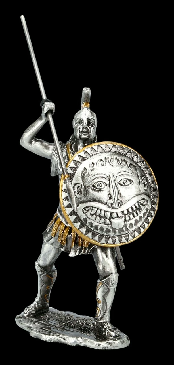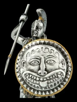 Wie eine Zinnfigur gearbeitet ist diese besondere Leonidas Figur aus der Historical Knights Collection von Veronese. Leonidas, König von Sparta und Feldherr ist eindrucksvoll aus handbemaltem Kunststein gefertigt und hat mit dem Speer eine Höhe von 12,5 cm (ohne Speer 10,5 cm), eine Gesamtbreite von 8,5 cm (ohne Speer 6,5 cm) und eine Gesamttiefe von 7 cm (ohne Speer 4 cm). Der Speer, den Leonidas in der rechten erhobenen Hand hält, ist zum Stecken. Die edle Leonidas-Figur wird inklusive einer schön bedruckten Geschenkbox geliefert.