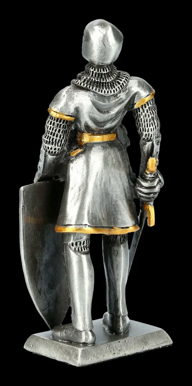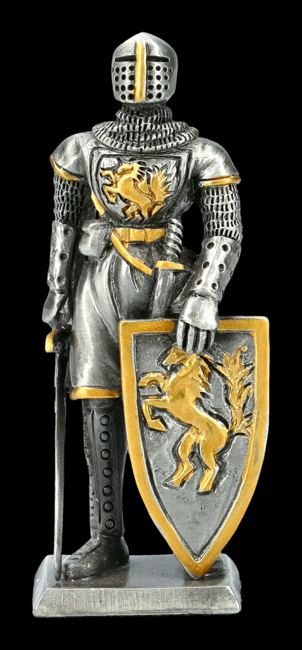 Die Ritterfigur aus hochwertigem Zinn mit Schwert und dem Pferdewappen auf dem Schild und auf der Rüstung ist sehr detailreich hergestellt und edel in Silber mit goldenen Akzenten handbemalt. Die dekorative Ritterfigur aus der Summit Collection ist vollplastisch und hat eine Höhe von 10,5 cm, eine Breite von 4,5 cm und eine Tiefe von 3 cm. Der Ritter lässt sich auch sehr gut mit den anderen Zinn Rittern aus der Summit Collection aus unserem Shop gruppieren. Der schöne Deko-Ritter aus Zinn mit Schwert und Pferdewappen ist auch ein tolles Geschenk für alle Sammler von Ritterfiguren.